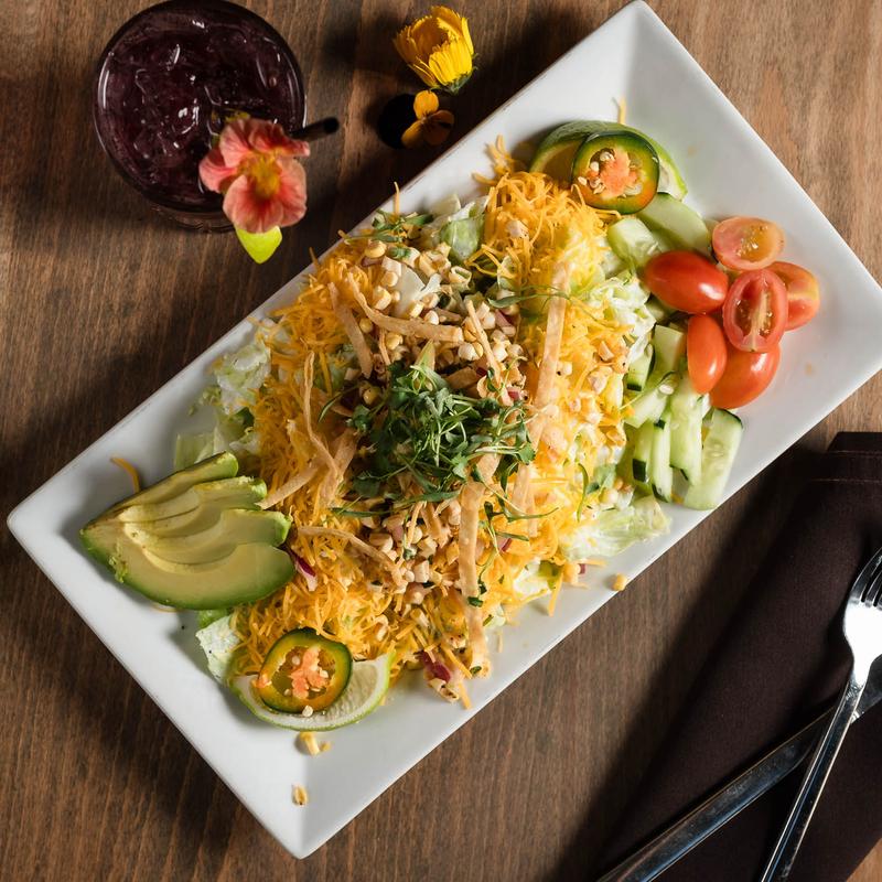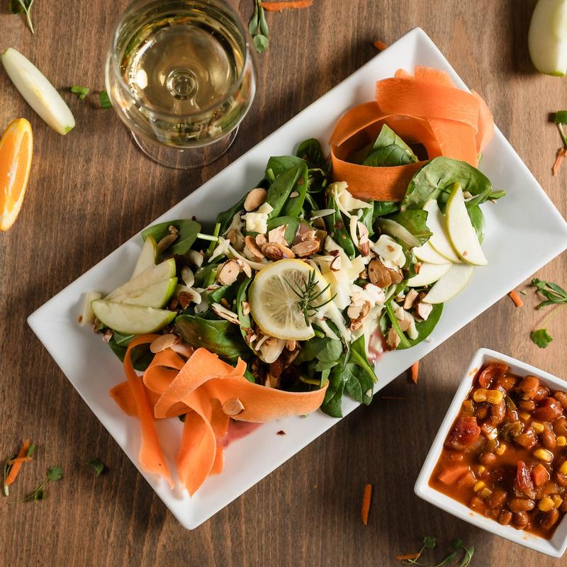 Add Garlic Seared Chicken or Sweet Potato Nut Fritters +$5.00 | Add Seared Tri-Tip +$6.00